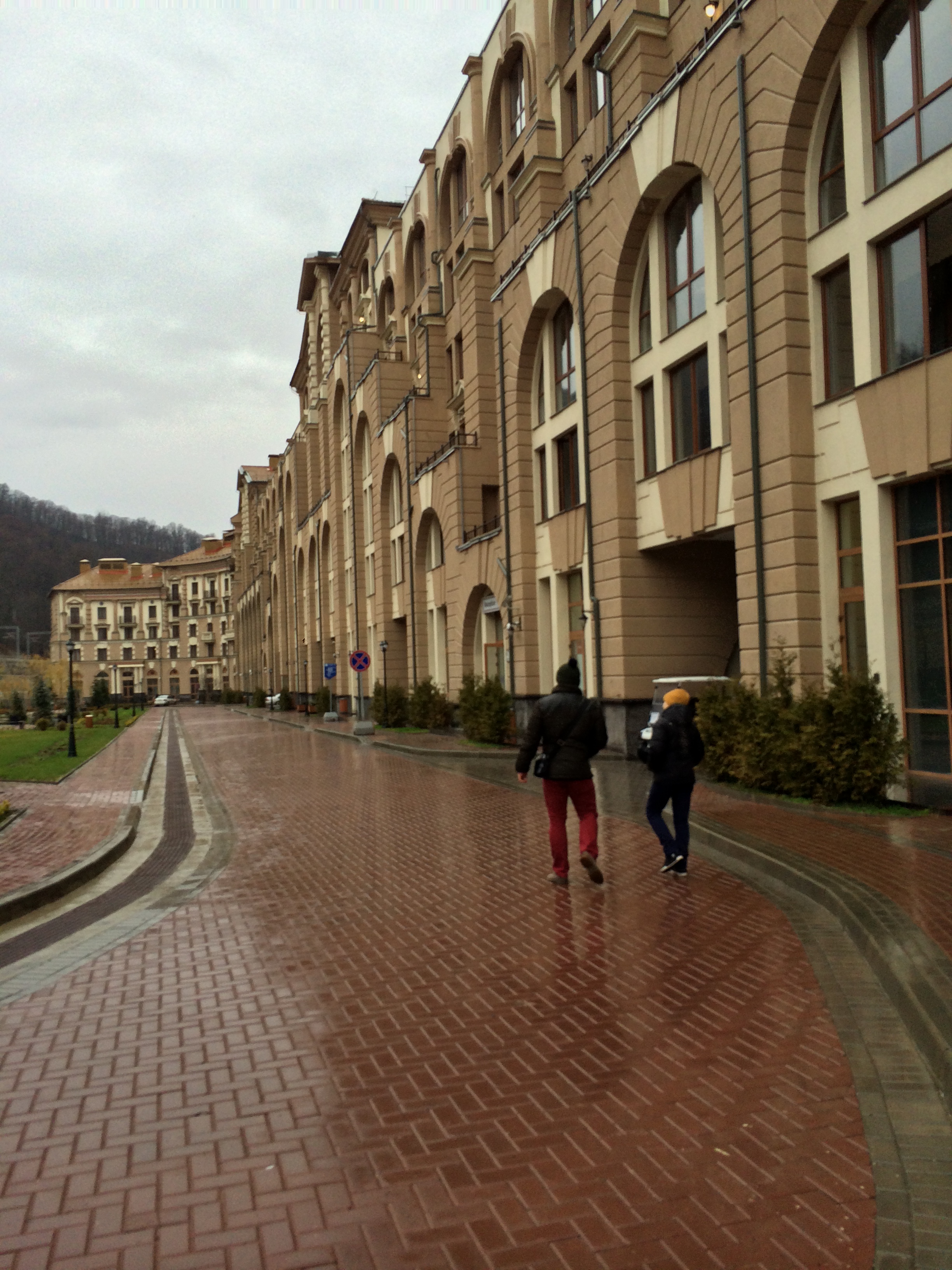 Today’s photos will be coming from Russia. Krasnaya Polyana is a mountain resort that hosted mountain sports competitions during the Olympic games in Sochi in 2014. At the moment, snow can be found only high in the mountains and the village itself does not look that wintery at all. However, it doesn’t mean that it lacks in holiday spirit. Thank you, Nat, for the photos :)
