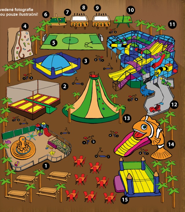 Moving on to various trampolines, slides and climbing walls for slightly older children.